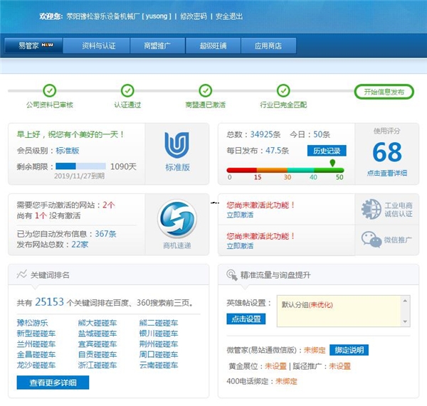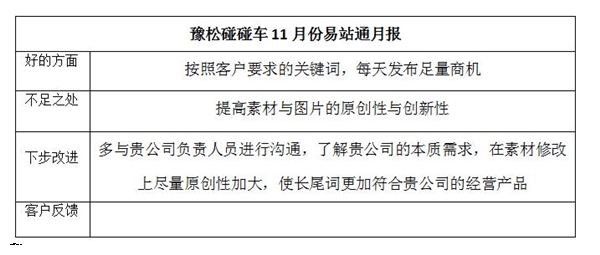 豫松碰碰车11月份易站通月报
