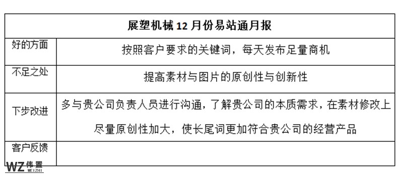 展塑机械12月份易站通月报