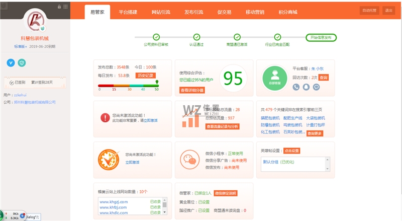 科慧包装与我们伟置电子合作的项目有:易站通、10个蜂巢、网站建设等等,以下是客户易站通开通页面以及10个蜂巢的截图。