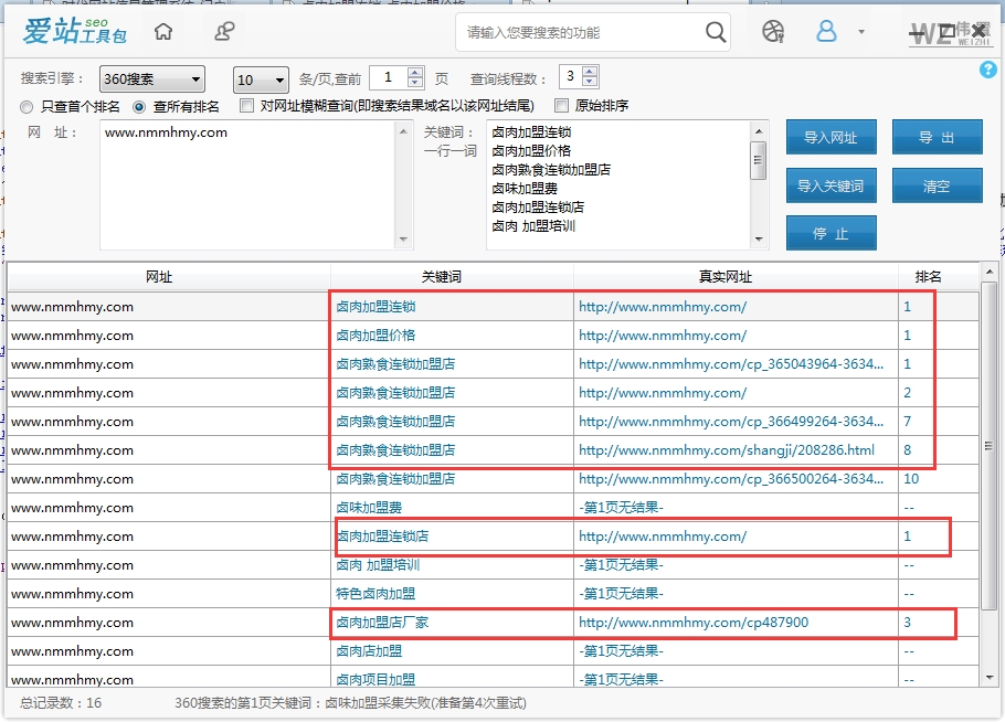 网站www.zzsklj.com 卤肉熟食加盟店16,本月排名百度第四名。百度整体关键词排名有所增加。