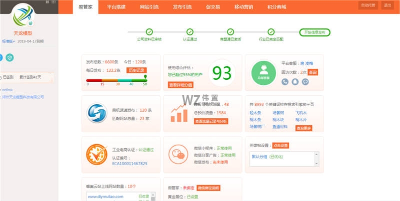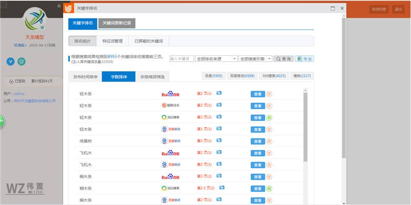 郑州天龙模型科技有限公司与我们伟置签字进行了易站通、小程序、蜂巢等项目的合作,在此我们非常感谢客户对我们的信赖与支持。以下是天龙模型易站通以及蜂巢数据的展示。