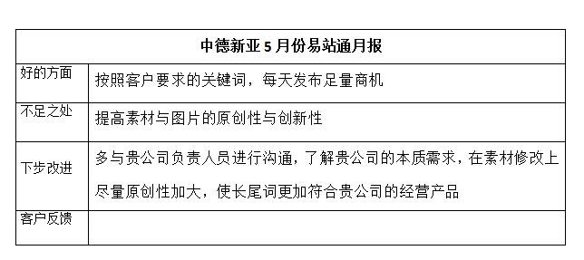中德新亚5月份易站通月报